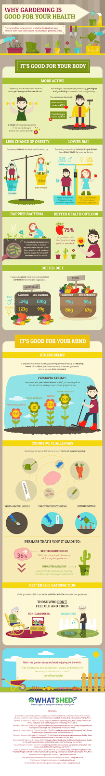 You Must Get Healthy and the good folks at WhatShed have joined forces to bring you this really cool infographic. Yes, the infographic is about gardening, but you will soon learn that gardening is one of the best ways for a person to not only have a lovely looking garden and a steady supply of healthy food. But it is also a fantastic way to stay in shape and be a happier person!